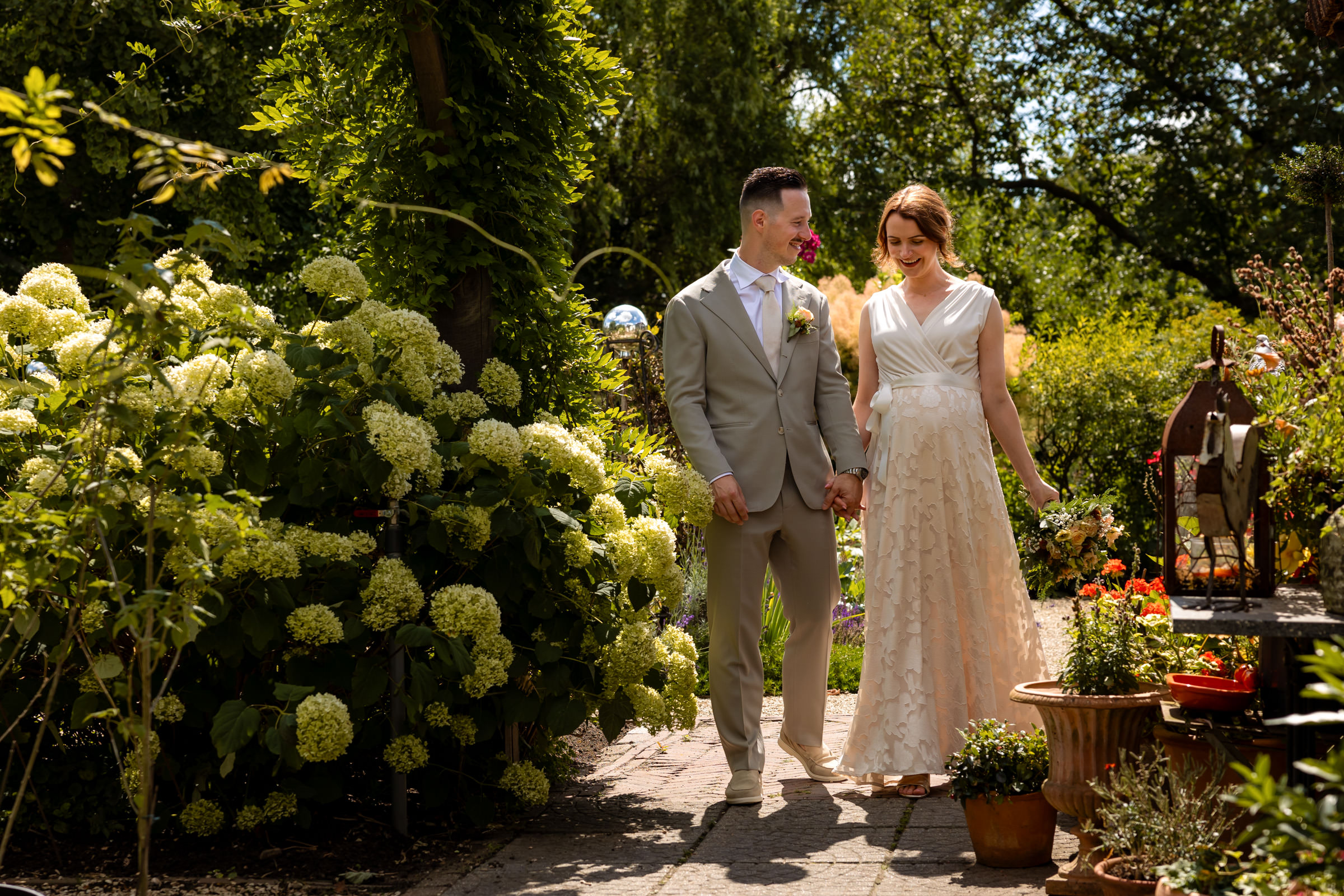 Dit bruidspaar was in verwachting van hun eerste kindje en hadden het plan om “even snel” te trouwen om alles goed geregeld te hebben voor de kleine. Op aanraden van familie hebben ze er toch een speciale dag van gemaakt op een mooie locatie met hun dierbaren. Gewoon een paar uurtjes samen, maar wel met hele mooie momenten. En dat wilden ze dan ook laten vastleggen op foto.