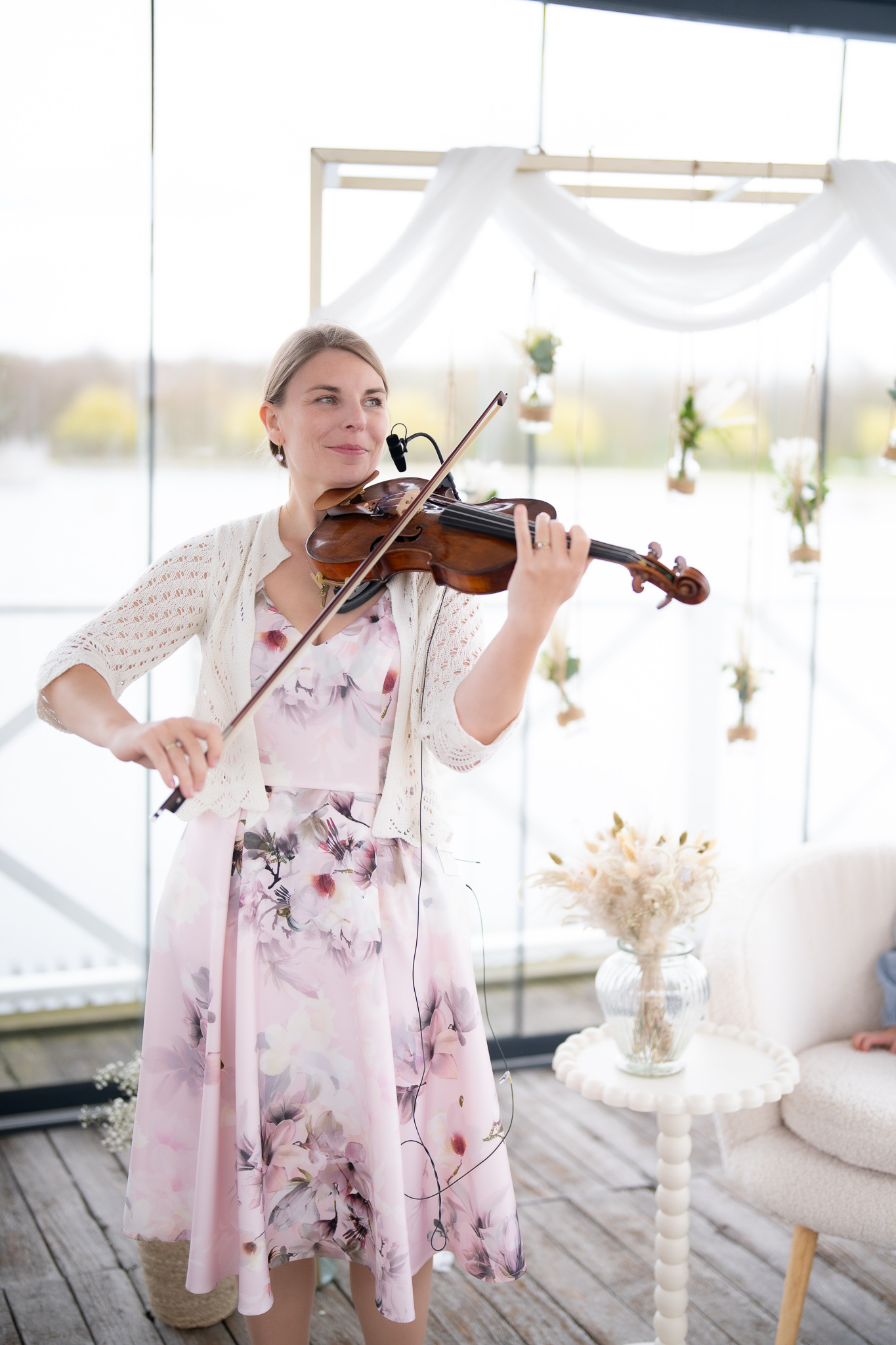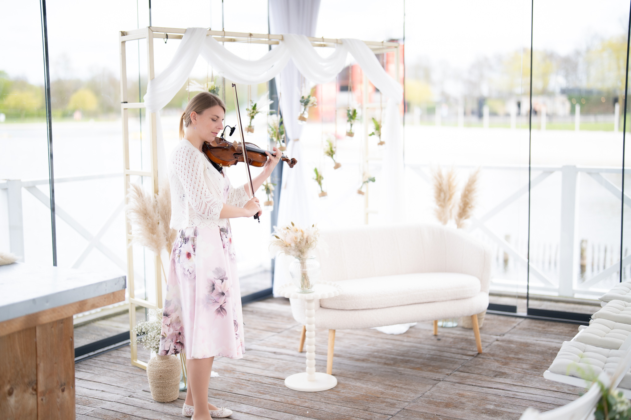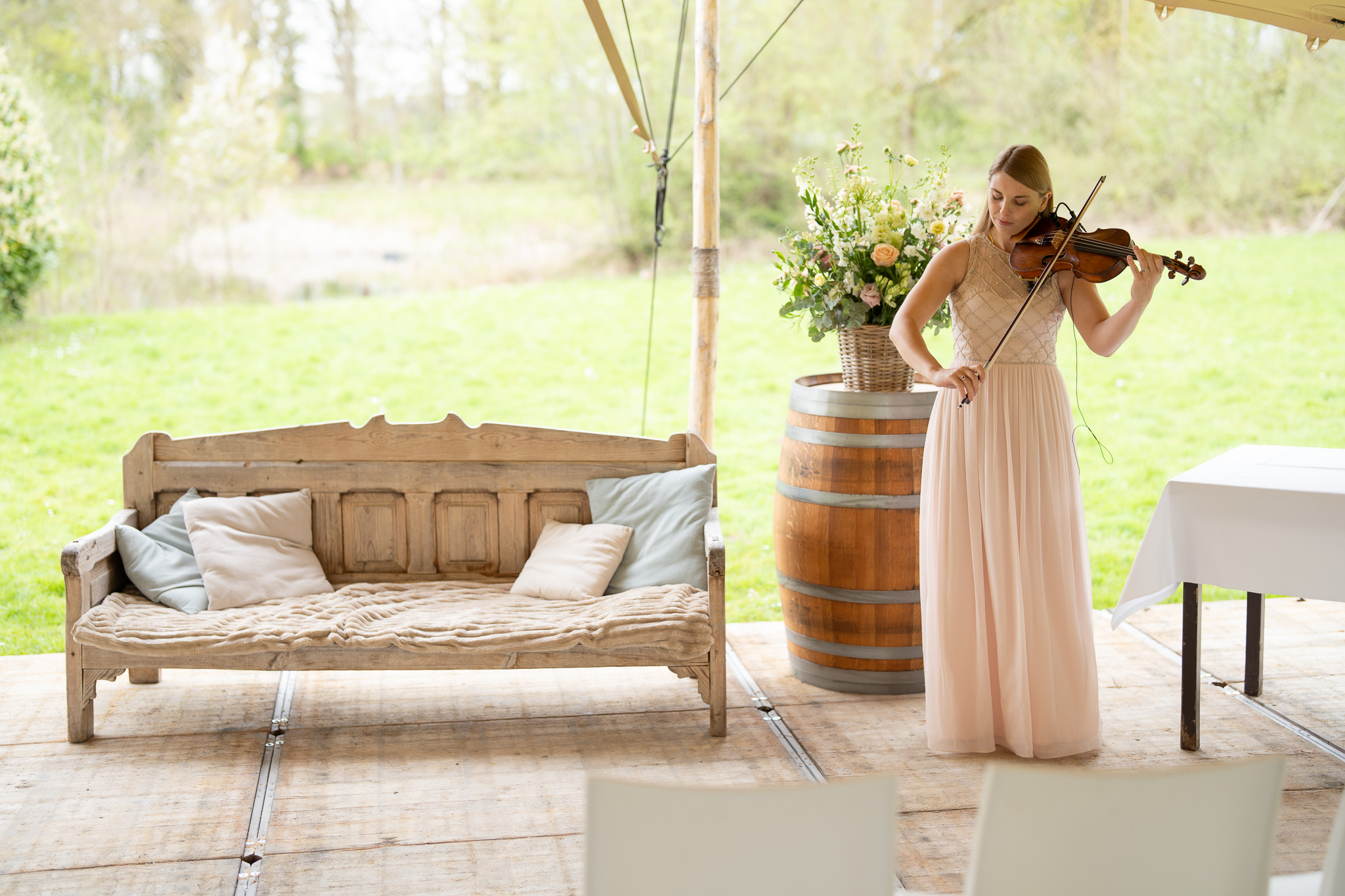 Met live viool ontstaat een elegante, bijna filmische sfeer: vaak omschreven als een subtiele Bridgerton vibe.